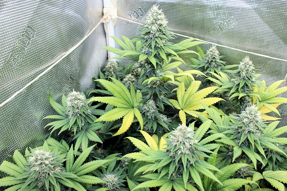 Now, this is a downside for some growers, but for others, growers like me, this hybrid is a clone hunter’s treasure chest indeed. All the F1s are heavy duty with regards to resin production. Now, the terpenes (smells and flavors) female to female can vary regarding intensity, 25% of my females expressed powerful grape terpenes in early flowering. About 25% of the females yield damn nicely, and the other 75% are more average yielding. All have solid rock-hard buds. They don’t smell strongly while growing, which some will like. After she’s dried some of the females stink hard, others less so, but even the weaker terpene plants still smell and taste pretty hashy, just less grapefruit.